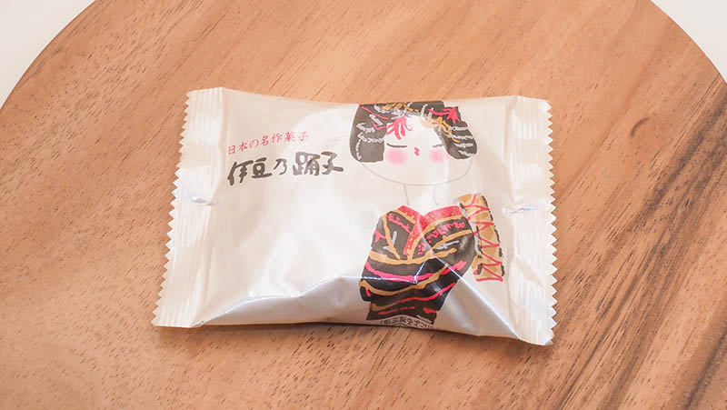 ノーベル賞作家 川端康成の名作、孤独な青年が伊豆への旅の途中で出会った旅芸人の一座、特に踊子に淡い恋心を抱く物語『伊豆の踊子』にちなんでつけられた名前だそうです。パッケージには踊子をイメージしたイラストが描かれています。伊豆のお菓子屋さんならではです。