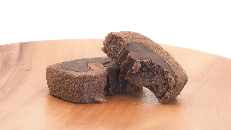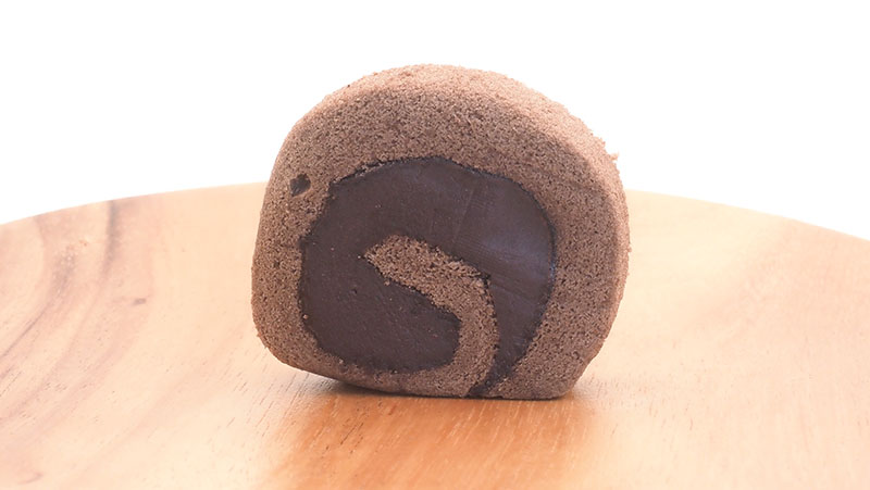 姿形はしっかりと一六タルトです。しかしながらスポンジ生地の色合いとチョコ餡の質感を見ていると洋菓子店のロールケーキのようにも感じます。でもまぁ、四国タルト自体がもともと和洋折衷の文化から生まれているので、当たり前といえば当たり前ですね。