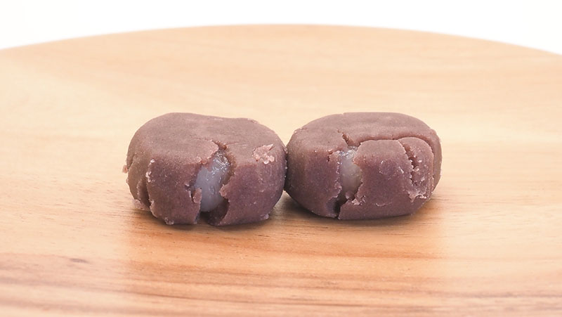 こしあんの中からつやつやした求肥が覗いています。美味しそう。