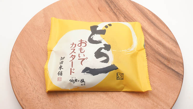 塩バタークリームのどら焼き『どら一(いち) 』で有名な愛媛県の「ハタダ本舗」さんが作る「どら一 おもいでカスタード」を買ってきました。カスタードクリームをメインにした変わり種のどら焼きです。