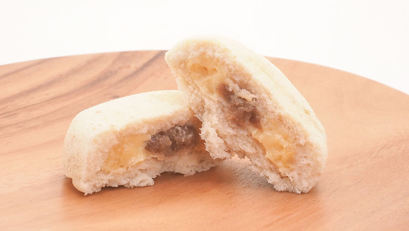 栗のカスタード饅頭ということで、スポンジ生地には栗の実も混ぜられているようです。秋らしい色合い。