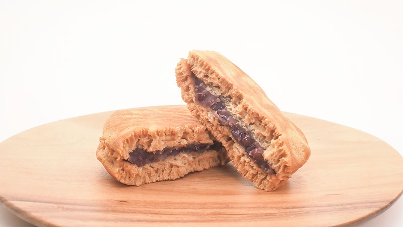 恋の歌にちなんだどら焼きというのもオツですが、見た目はトラ柄の生地のフワフワタイプ。