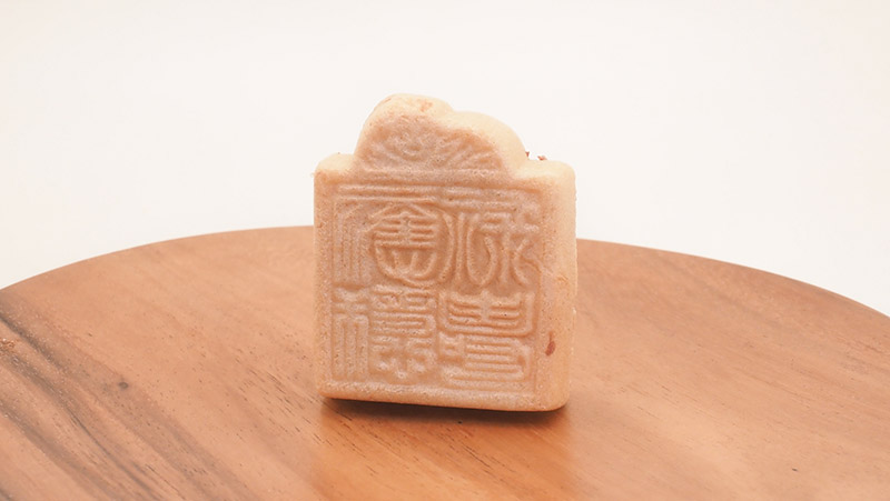 いつも感じますが、モナカ生地って思っているより細かな造形が可能なんですね。印の模様が微細に再現されており、栃木県の香雲堂本店さんが作る「古印最中」と似ていると思いました。