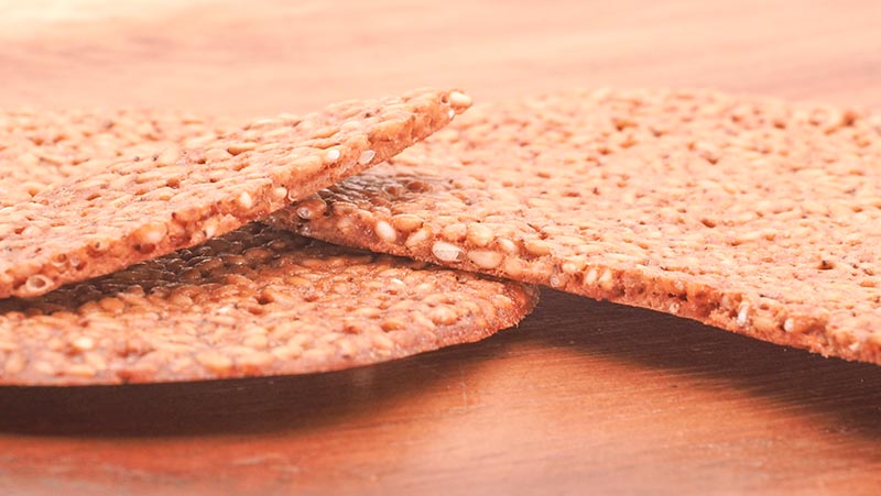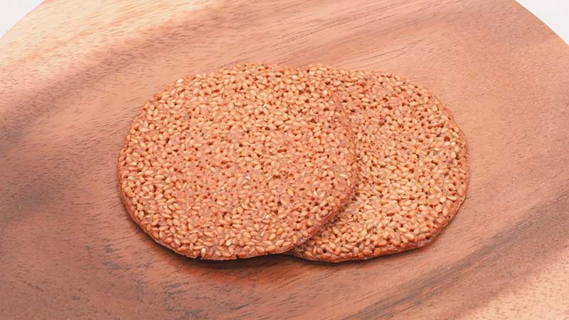 非常に薄く仕上げられておりパリッとした質感です。ごまとごまをつないでいる生地はザラメのような光沢のある質感。