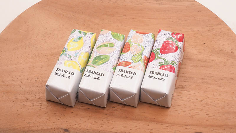 洋菓子のフランセさんが作る「ミルフィユ」ときどきデパ地下見かけるお洒落なパッケージが気になっていました。パッケージのデザインがなんとも洒落ていて箱に収められた見ためがカラフルです。