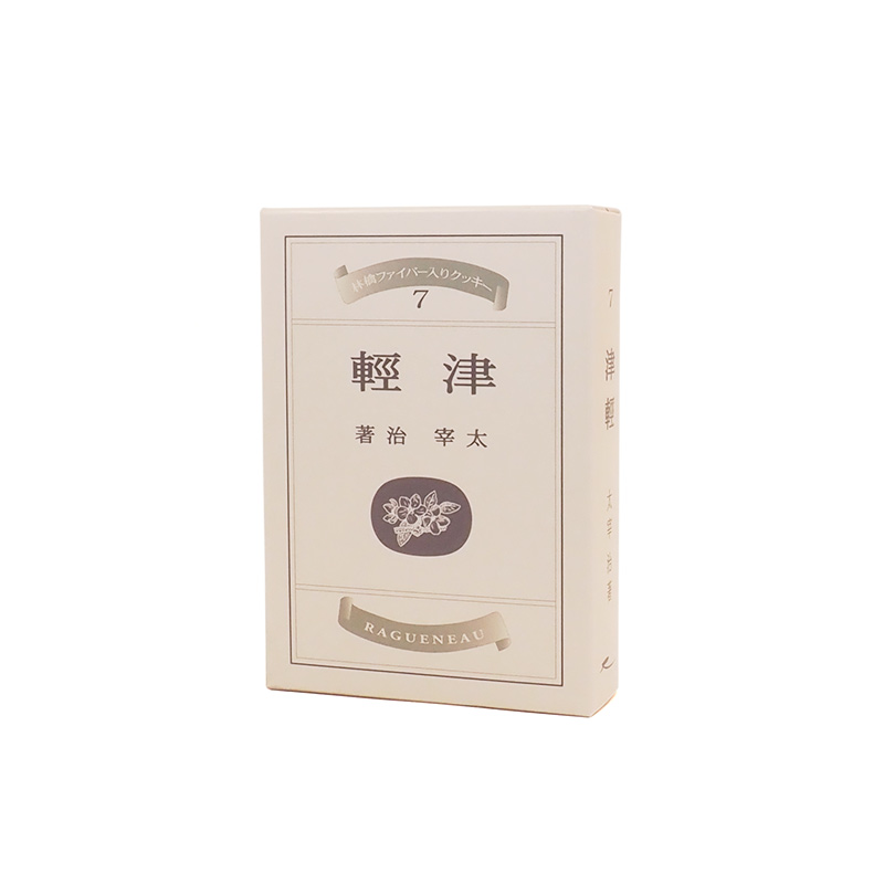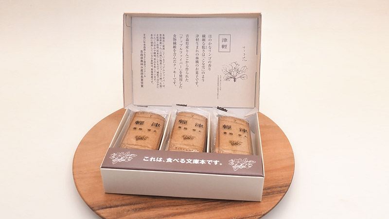 太宰治の小説「津軽」にちなんで、外箱が文庫本の装丁に見立てられているユニークなクッキー。青森県でりんごのおみやげお菓子といえばのラグノオささきさんが作っています。