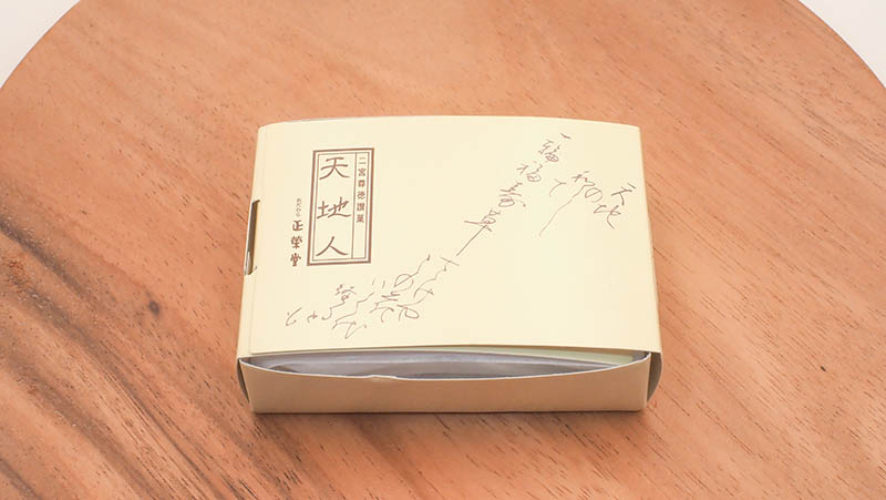 神奈川県小田原市で創業100年以上の歴史を誇る老舗和菓子店の正栄堂さん、代表銘菓は北条小田原氏にまつわる「虎朱印最中」ですが、さまざまな伝統の和菓子を作られており、この「天地人」も小田原が生んだ偉人”二宮尊徳翁”にちなんだお菓子です。