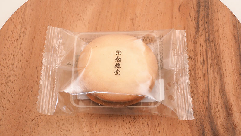 職人さんの作る和菓子のラインナップが多い勉強堂さんですが「杏とラムレーズンサンド」はクッキー生地に、甘酸っぱい杏のジャムとレーズン、クリームをサンドした洋菓子。シンプルなパッケージですが高級感が漂います。