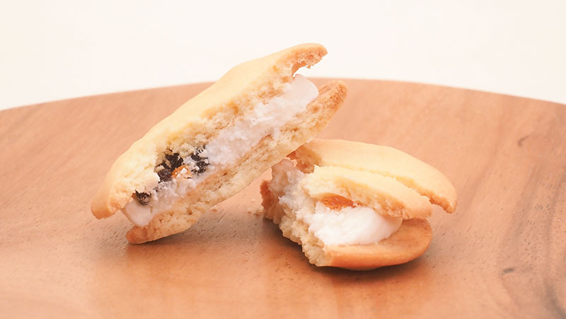 杏の風味が利いたクリームが絶妙なレーズンクッキーサンド