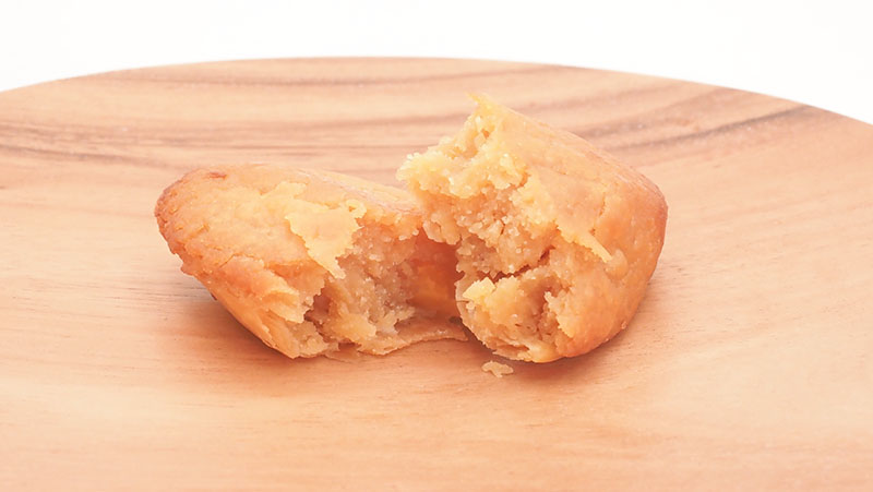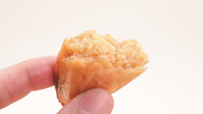 小さな焼き芋のような質感です。半分に割るといまにも湯気が出てきそうなホクホク感。